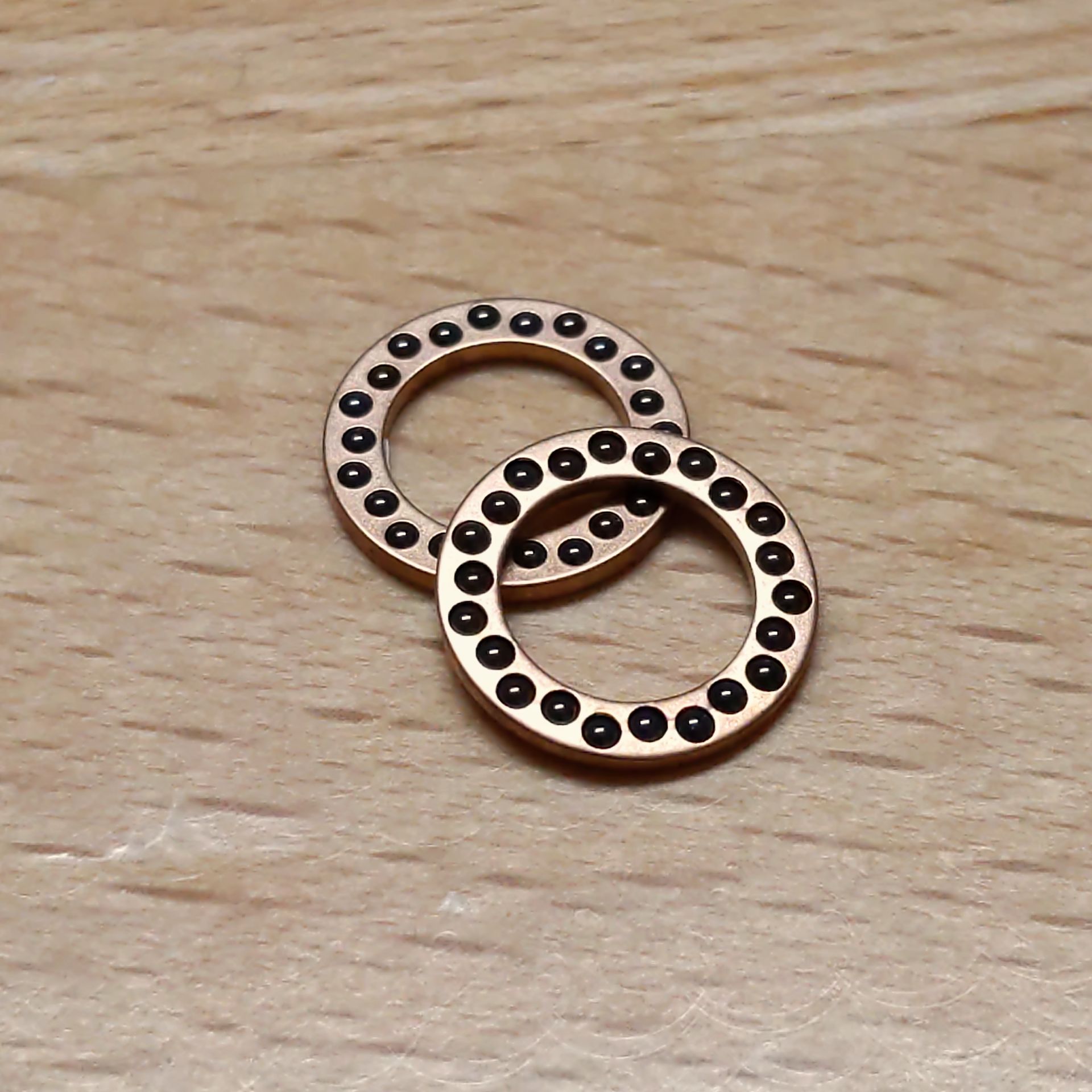 Cage bearings that allow more balls to be placed around the knife pivot than standard cage bearings. Which provides more support for the blade and decreasing stress on each ball. The ceramic balls are captured in the disc but are still free floating to prevent binding.