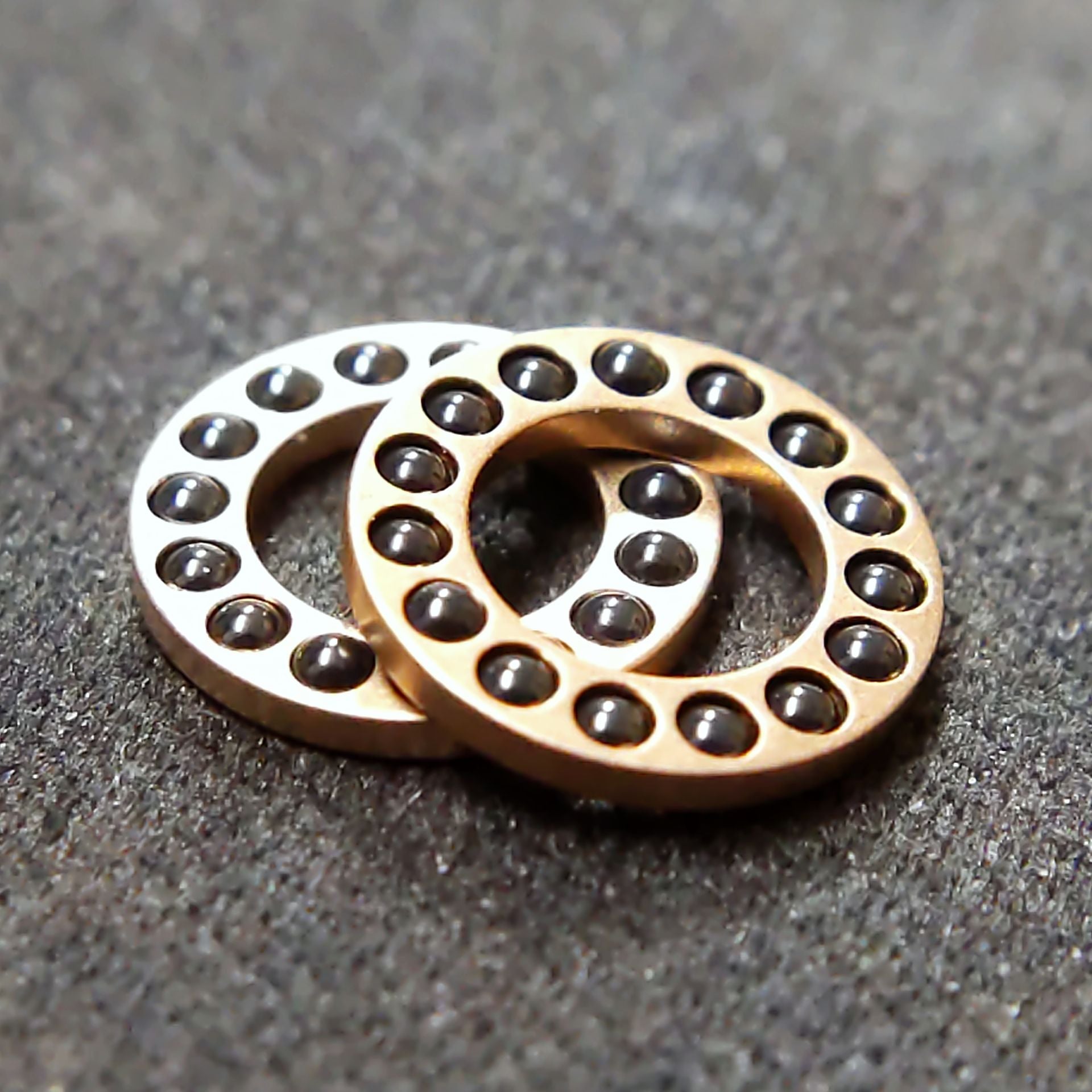 Cage bearings that allow more balls to be placed around the knife pivot than standard cage bearings. Which provides more support for the blade and decreasing stress on each ball. The ceramic balls are captured in the disc but are still free floating to prevent binding.